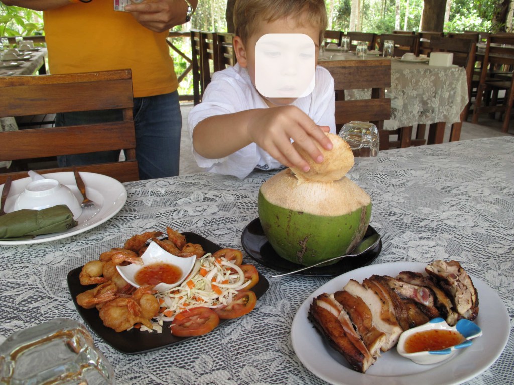 Zum Essen: Es gibt nicht nur Pizza und Pommes (auch, aber nicht nur). Thailändisch ist fein und es gibt auch nicht so scharfe Sachen, die Kinder gerne haben. Juniors Favoriten: Gemüse und Shrimps frittiert im Teig (Tempura). Pouletspiesschen mit Erdnuss-sauce (Satay), Mango Sticky Rice (Kokos-Milchreis mit thailändischer Mango). Auch eine milde Kokosmilchsuppe geht oder etwas süss-sauer-artiges mit Ananas.