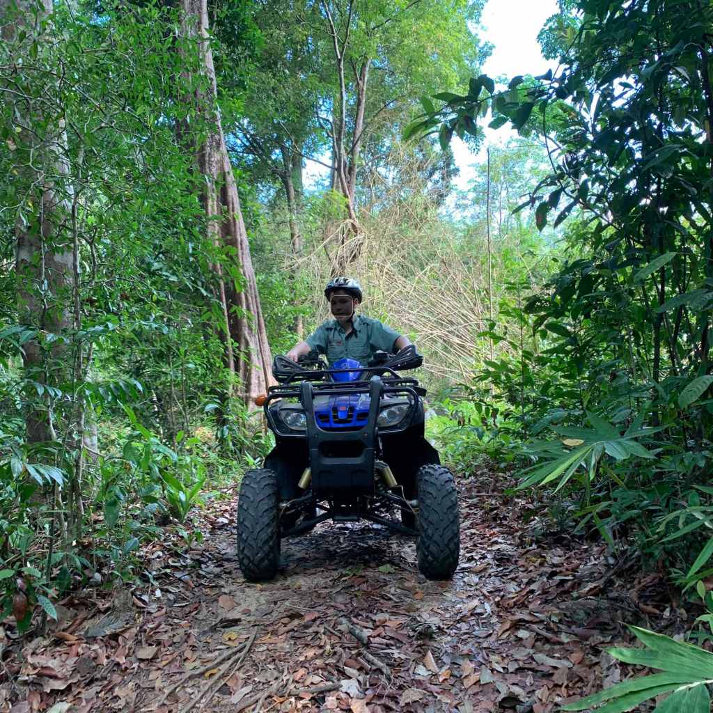 Die vierrädrigen landschaftsgängigen kleinen Fahrzeuge (Quad oder ATV) sind vielleicht eher etwas für grössere Kinder – ab 12, manchmal auch erst ab 15 Jahren darf man selber fahren. Vorher ist man Mitfahrer – und sollte sich zumindest gut festhalten können. Die Fahrt geht über Stock und Stein und gelegentlich auch durch kleine Flüsschen. Ein Abenteuer, das man nahe bei Khao Lak am Sai Rung Wasserfall oder südlich des Hügels buchen kann.