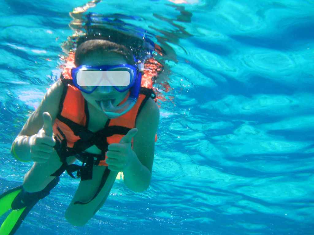 Oder man wagt sich an einen Tauchkurs: Kinder können ab 8 Jahren den „Bubblemaker“, einen Tauch-Einführungskurs im Pool machen. Dabei werden sie von den Eltern und einem erfahrenen Tauchlehrer begleitet und instruiert. Das Mindestalter für Junior-Tauchkurse ist 10-12 Jahre, dann geht es auch ins Meer.