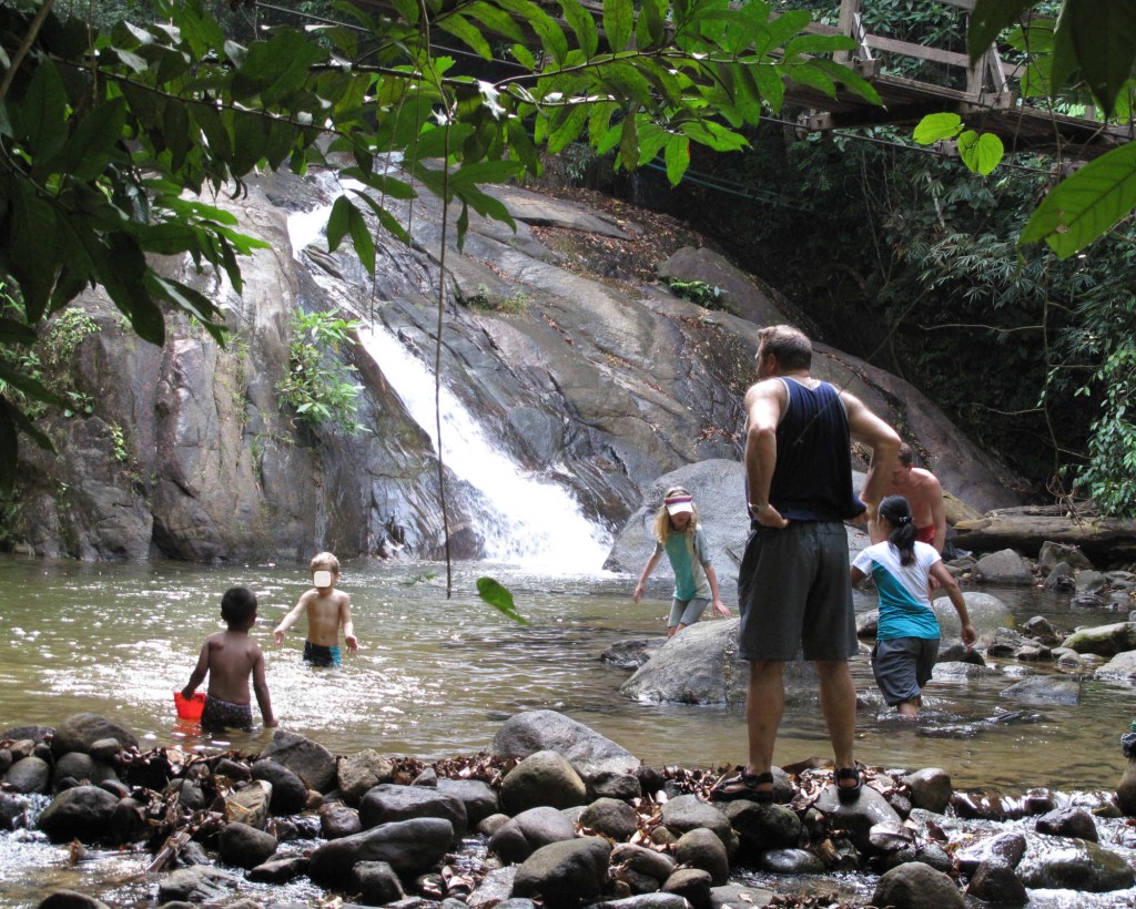 Rund um Khao Lak hat es viele Wasserfälle, die zwar nicht riesig oder sehr beeindruckend sind (vor allem nicht in der Trockenzeit), aber sich gut eignen zum abkühlen und planschen. Häufig trifft man dort auch thailändische Familien mit Kindern, die genau dasselbe machen.