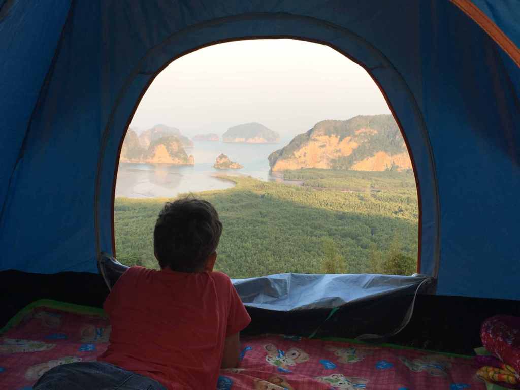 In a tent with a view – for example at the Samet Nangshe viewpoint or next to it at the Ao Toh Li Viewpoint or in Khao Sok.