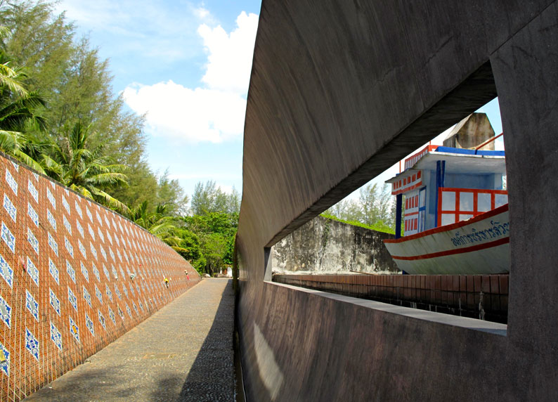 Ein vom Tsunami 2004 stark betroffener Ort war das Fischerdorf Baan Nam Khen, nördlich der Strände von Khao Lak. Dort steht heute der Baan Nam Khen Tsunami Memorial Park gerade am Strand. Das Memorial besteht aus zwei längeren Wänden. Eine ist aus Beton und geformt wie eine Welle, die gegenüberliegende Wand ist bedeckt mit Kacheln und Namensschildern, manche mit Fotos, andere mit frischen Blumen.