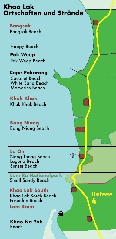 Strände und Restaurants in Khao Lak von Süd nach Nord: